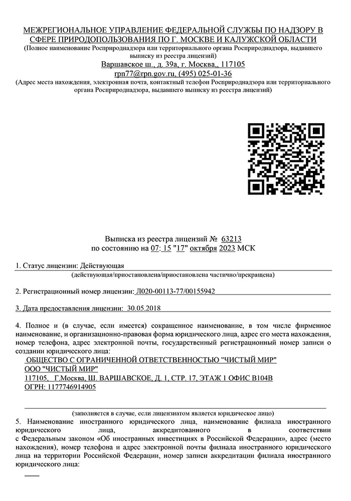 Наша предприятие имеет ветеринарное удостоверение на прием, хранение и уничтожение биологических отходов. Соблюдены все ветеринарно-санитарные требования, номер площадки в ИС «Цербер»: RU050:19765124.